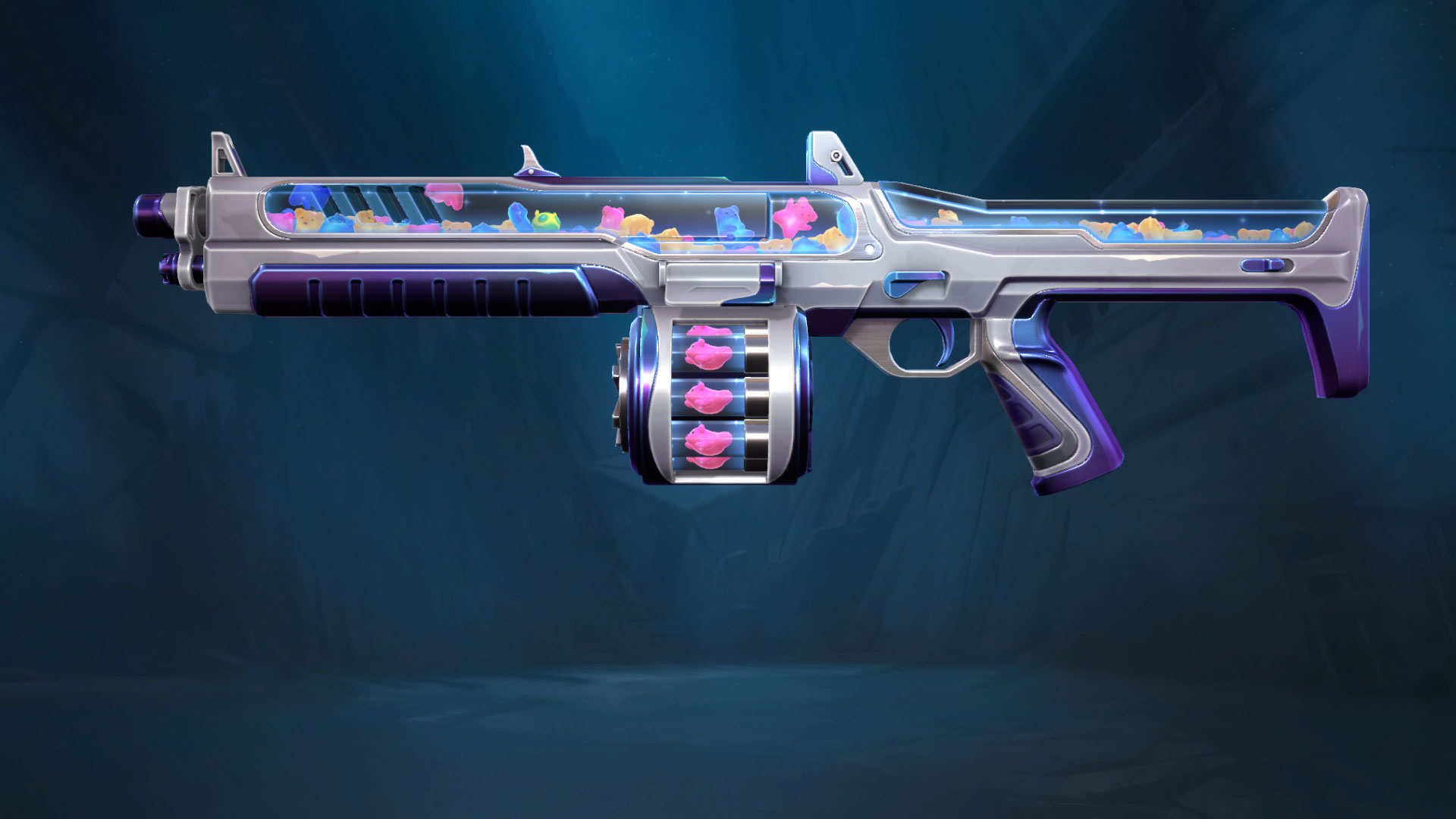 The Jellybeam Bundle brings a playful, candy-inspired aesthetic straight to your loadout. Dressed in silver and blue with purple grips, each weapon features 3D multicoloured gummy bears floating around like a lava lamp, it's whimsical, it's joyful, and it's unmistakably unique. No special animations or SFX, but the gummy bear detailing more than speaks for itself.