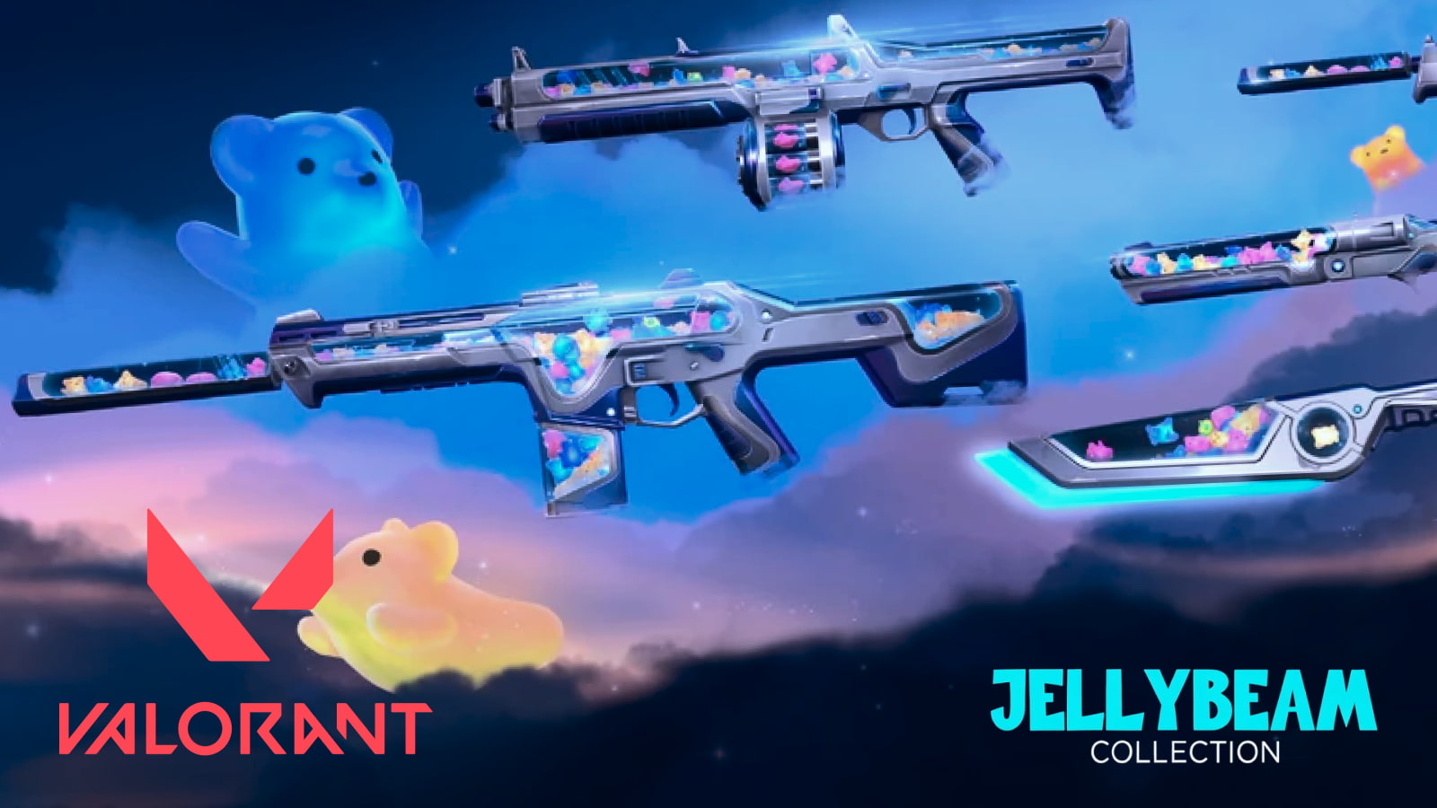 The full Jellybeam Bundle costs 5,100 VP, that's the best-value way to get all five items in one go. If you'd rather pick and choose, each individual gun skin is priced at 1,275 VP, while the exclusive Sugarslice melee blade comes in at a higher 2,550 VP on its own.